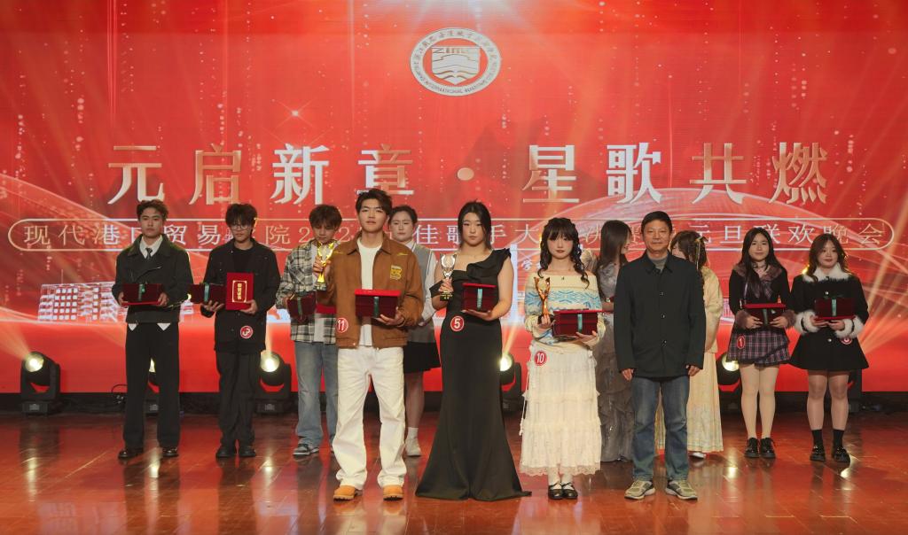 最终,十佳歌手优胜奖、十佳歌手及冠亚季军相继揭晓,领导嘉宾上台颁奖并合影。歌声暂歇,情谊长存,港贸学子将带着今夜的璀璨记忆,奔赴2026新的征程。图文/李沛沛)