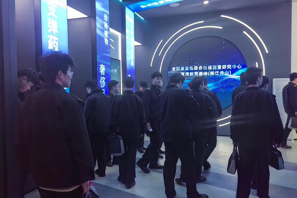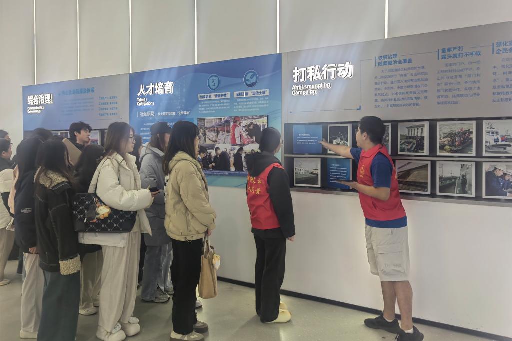 活动期间,来自全校各学院2024级的同学们,在专业反走私宣讲员的带领下,有序前往全国反走私综合治理调查研究中心宣传教育基地(浙江舟山)开展参观学习。展厅内,一件件走私涉案实物触目惊心,一幅幅案例图片直击人心,一段段真实视频资料全景展现,全方位揭露了走私行为对国家经济秩序、社会公共利益及生态环境造成的不可逆转的严重危害。参观过程中,同学们神情专注、认真聆听讲解、细致记录要点,不时驻足凝视展品、主动向宣讲员请教疑问。现场还为大家准备了印有反走私标识的纸巾、笔记本、签字笔、口罩等文创小礼品,让同学们在汲取反走私知识的同时,收获了满满的惊喜与仪式感。此次参观教育环节,累计发放反走私宣传册及主题纪念品1500余份,实现了知识传递与理念渗透的双重成效。
