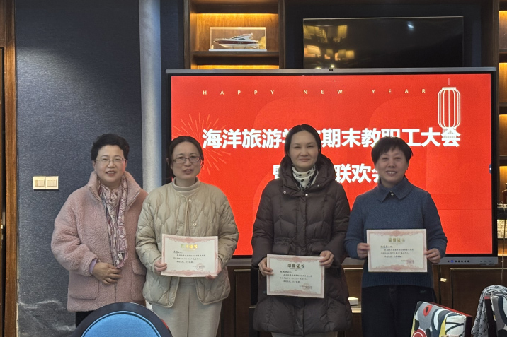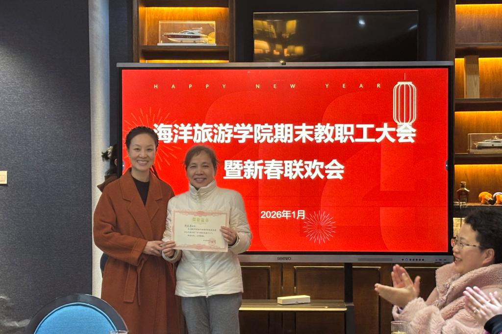 1月28日上午,海洋旅游学院全体教职工欢聚一堂,召开期末教职工大会暨2026年新春联欢会。大会由学院党总支副书记管建民、分团委书记祝丽岚主持。