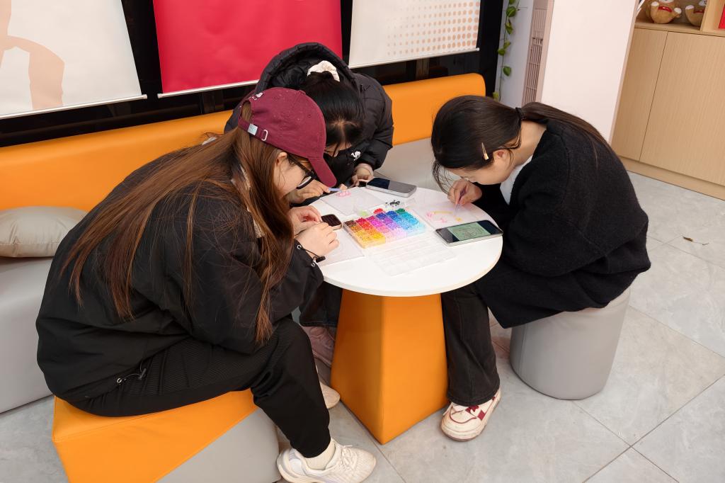 创作过程中,大家相互协作、分享灵感。有人拼到细微处,身旁伙伴便递上镊子;有人对配色犹豫不决,众人便围坐共商。从技巧切磋到成品欣喜,手工的温度在彼此间悄然传递。所有作品经加热定型,流动的色彩凝固成晶莹透亮的挂件与摆件,社员们手捧成果,成就感溢于言表。