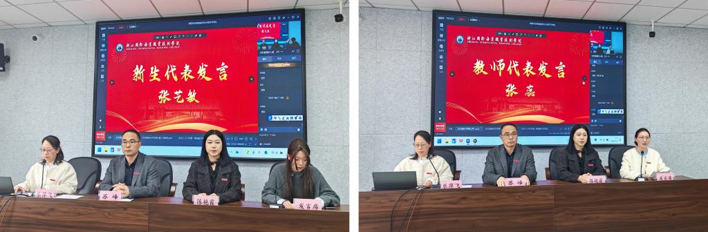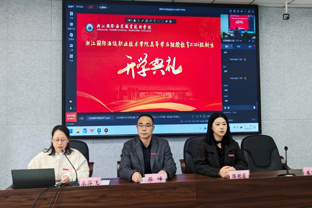 典礼在雄壮的国歌声中拉开帷幕。新生代表张艺敏、教师代表张蕊分别发言,传递职场人重返校园的求学初心与师者护航的育人担当。东海教育学院院长苏峰致辞,回顾学校深耕海洋教育的办学历程,寄语新生,要以海纳百川的胸襟拥抱航运行业变革,主动学习专业知识与新兴技能;以精业笃行的态度克服工学矛盾,练就职业硬核本领;以向海而行的担当践行“德行四海”校训,将个人成长融入海洋强国建设大局;以同舟共济的初心携手同窗,在交流互助中共同成长,让学习成为突破自我、服务社会的力量。