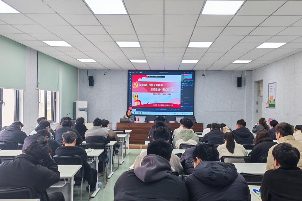 仪式第二阶段,东海教育学院副院长陈艳霞围绕学业规划、教学管理等开展始业教育,为新生明晰学习路径、破解工学矛盾提供务实指引。马克思主义学院院长刘笑菊教授以《深学笃行四中全会精神 接续推进中国式现代化》为题讲授“开学第一课”,系统解读全会精神,结合海洋经济特色引导新生坚定理想信念、践行实干担当。
