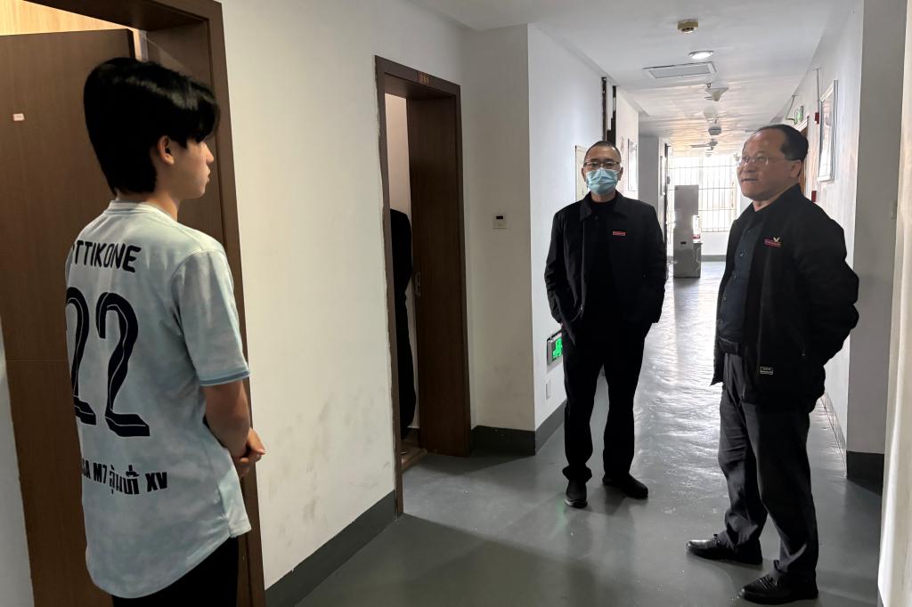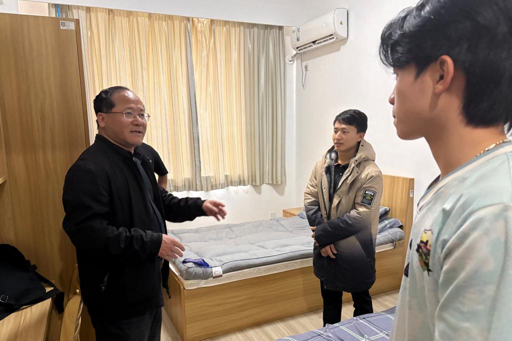 走访过程中,孔志光副书记与留学生们面对面交流,亲切询问他们的日常起居、饮食安排及学习进展,关切了解他们在校期间遇到的困难与需求。他对留学生们克服文化差异、积极融入校园生活的努力表示赞赏,并鼓励大家珍惜在华学习机会,深入了解中国文化,做中外友好交流的使者,搭建起中外友好沟通的桥梁。