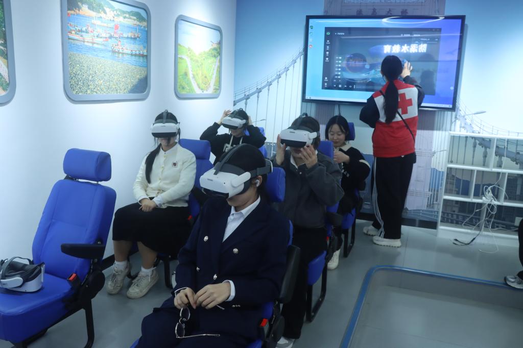 祭扫活动结束后,师生们前往舟山市生命教育体验馆进行了实操体验学习。在紧急逃生体验环节,场馆工作人员详细讲解了火灾发生时的逃生技巧,并组织师生模拟真实火灾场景,进行逃生演练;应急救护环节则重点讲解了心肺复苏(CPR)等实用技能,帮助师生熟练掌握应急救护本领。此外,讲解员还与师生模拟了心理健康沙盘的作用;在反诈防骗宣传环节,通过案例讲解、情景模拟等形式,向师生普及反诈防骗知识,提醒大家提高防范意识,守护自身财产安全。