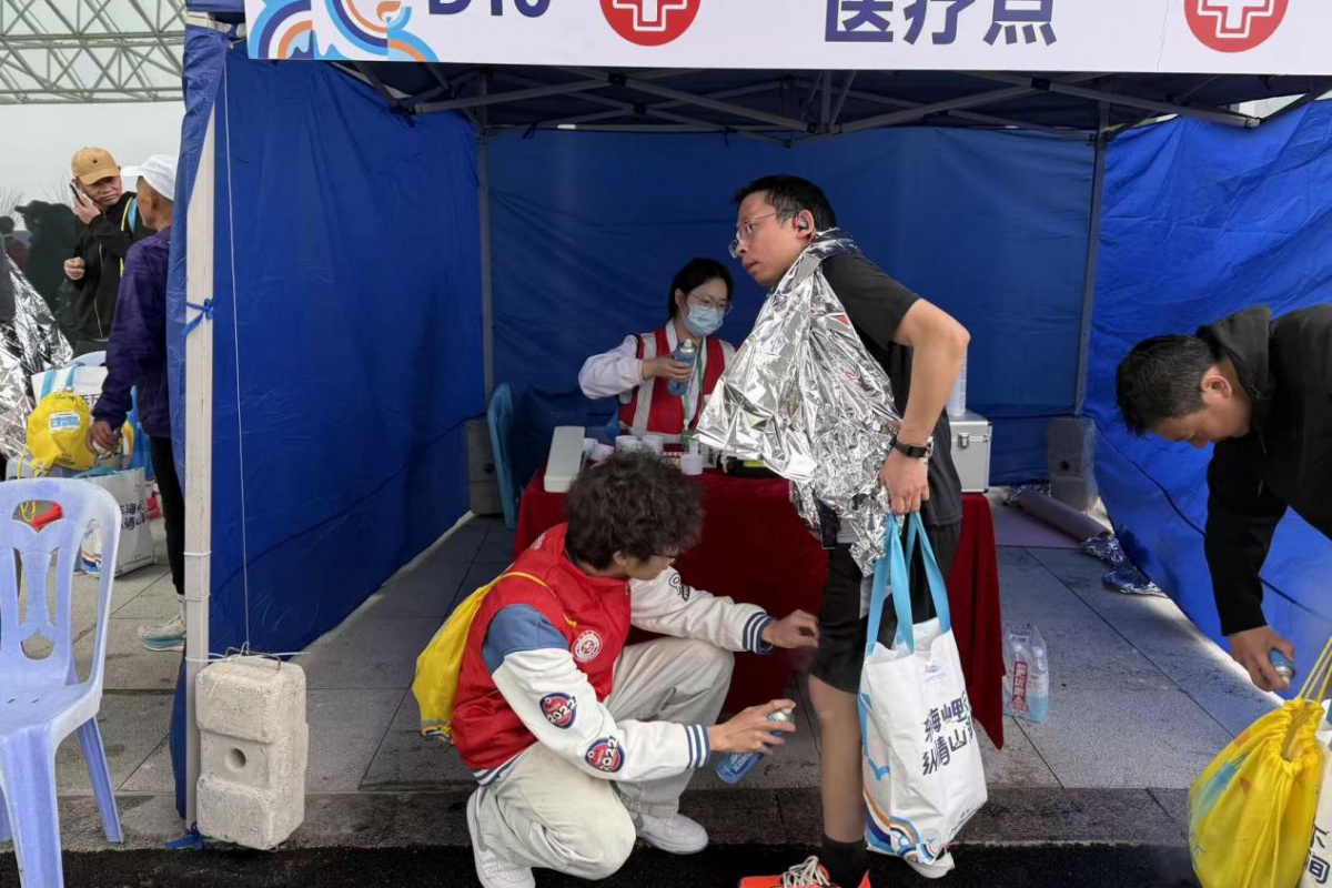 凌晨五点,天色未亮,志愿者们已整装集结、准时出发,统一乘车奔赴赛事各点位。从物资分发、赛道补给,到起点引导、终点拉伸,大家被科学分配至关键岗位,分工明确、高效协作。学校“启航救护队”组建的医疗志愿组,凭借规范急救技能与贴心细致服务,全程守护选手安全,成为赛道上可靠的“生命守护者”。