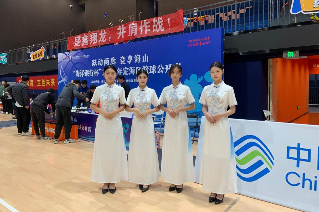 12月10日,“海洋银行杯”2025年定海区篮球公开赛在定海精彩开赛,我校海洋旅游学院礼仪志愿者服务团队受邀助阵,以专业服务为赛事添彩。